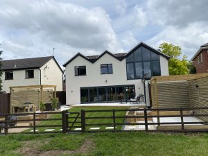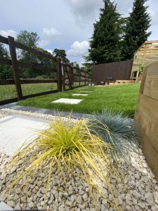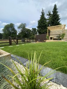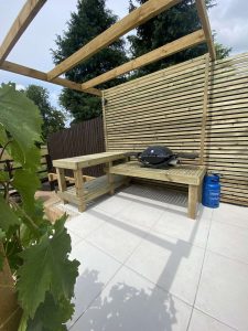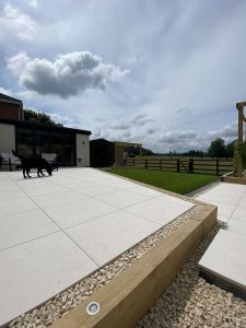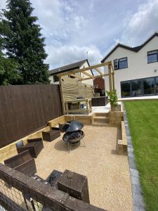 – Multiple level garden – Raised porcelain patio – Indoor outdoor living – Timber planters, decorative lath fences & pergolas – Sloping lawn & planting – Water feature – Lighting design and Installation – BBQ, Outdoor kitchen, Firepit & Hot tub areas